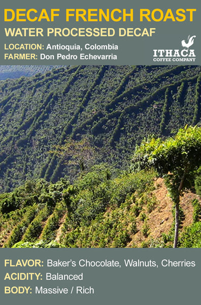 Our darkest roasted decaffeinated offering, this coffee is made from water decaffeinated beans from Colombia. It has a smoky, dark chocolate aroma paired with a sharp, deep, dark chocolate flavor that seems to go on forever. It has a massive body that is paired with an equally formidable acidity to provide a cleansing finish.