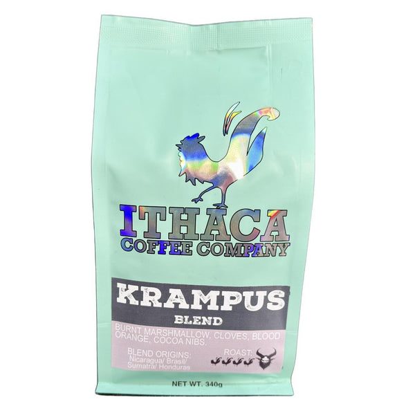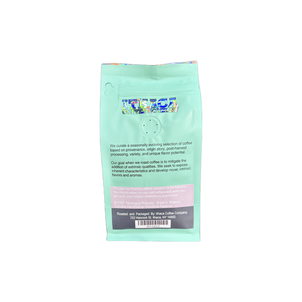 We debuted the original Krampus Blend back in 2013. This year's blend is unique due tot he first blend component being a Robusta coffee. one of the two main branches of the coffee genomic tree. Robusta is known for intensity, and big flavors, as well as a good deal more cafeine than Arabica coffee which represents literally all of the rest of our coffees.